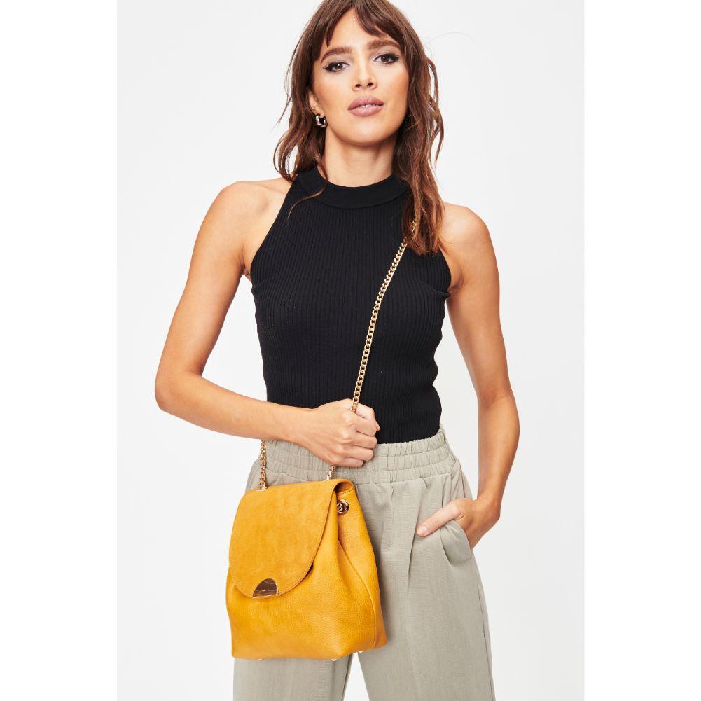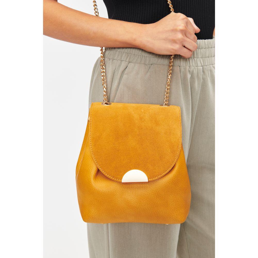 A stylish, vegan leather crossbody bag that combines classic style with modern convenience. The exterior is detailed with a suede front flap and gold hardware, making it both eye-catching and timeless. It’s also super secure thanks to its magnetic closure.