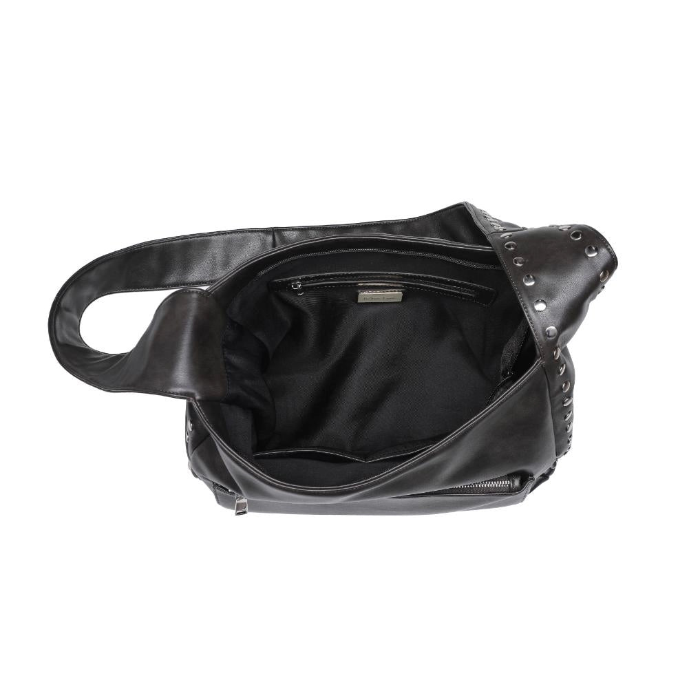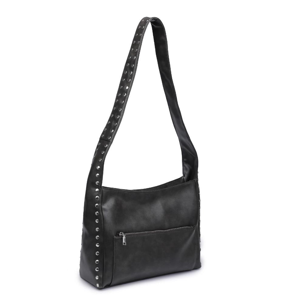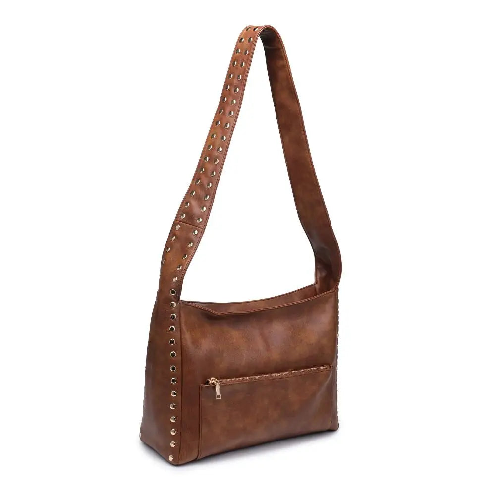 Elevate your everyday ensemble with this chic crossbody crafted from smooth vegan leather. Adorned with stud embellishments, it features convenient front and back zip pockets for easy access to your essentials. Inside, the fabric-lined interior boasts a zip pocket and two slip pockets, ensuring your belongings are organized with style. *Item Type: Crossbody *Material: Vegan Leather *Closure: Zipper. *Exterior Details: Smooth Vegan Leather, Stud Embellishments, Front and Back Zip Pockets. *Interior Details: Fabric Lined, 1 Zip Pocket, 2 Slip Pockets