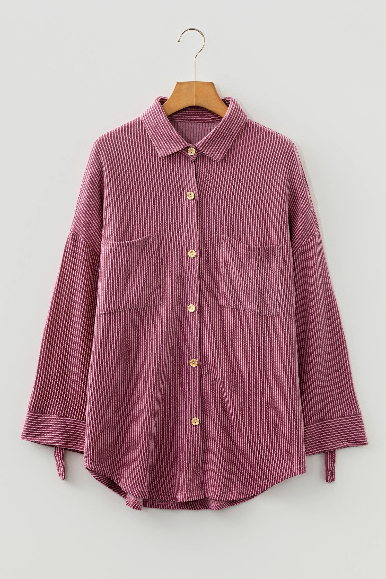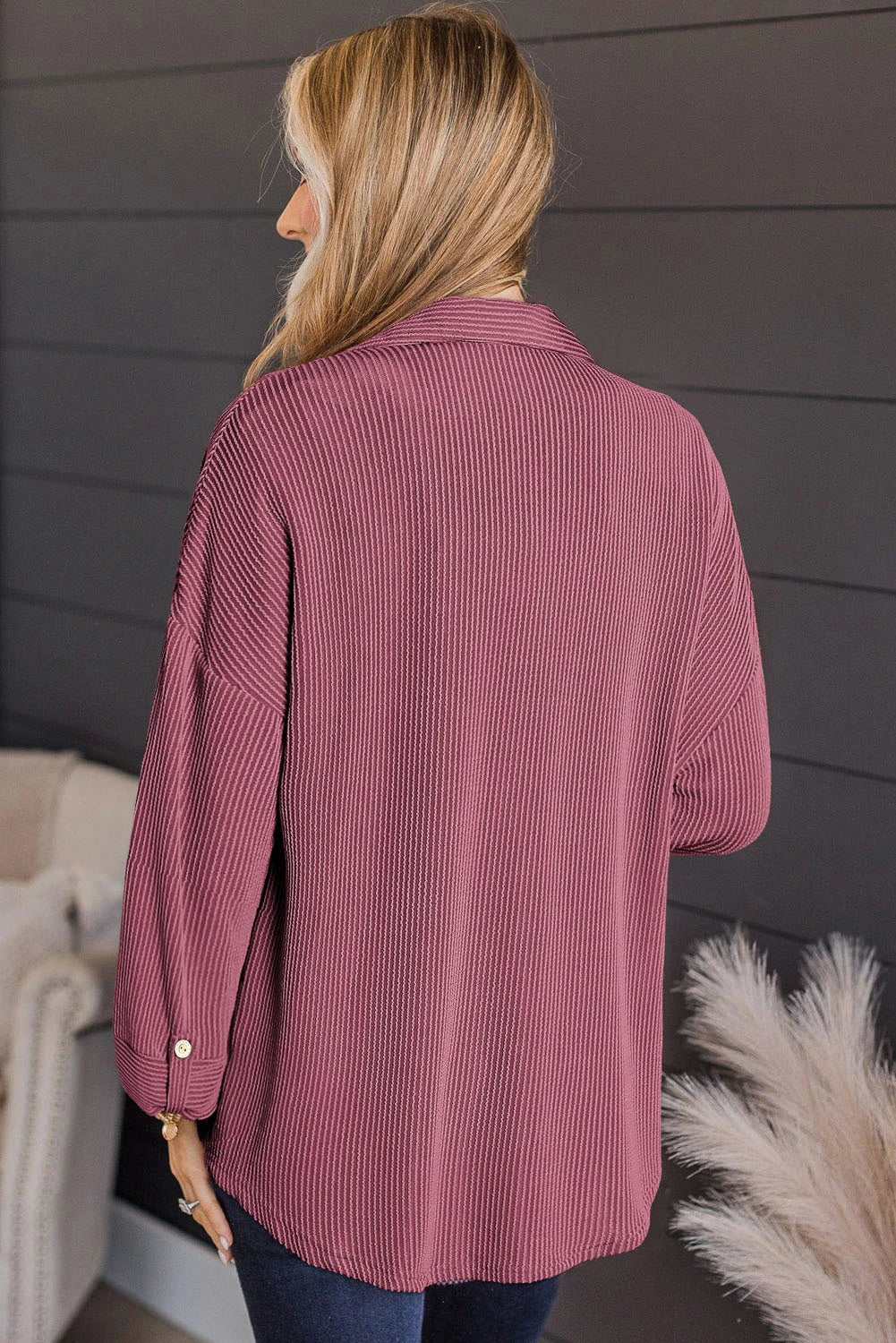 Effortless, textured, and made for everyday wear. The Off-Duty Rebel Button-Up brings laid-back structure with a modern edge, crafted from a soft, stretchy corded fabric that adds subtle ribbed dimension. Designed with classic button-front styling, roll-tab sleeves, and a chest pocket for that borrowed-from-the-boys vibe. Easy to throw on over a tee or wear buttoned up with denim, this piece finishes any casual look without trying too hard. Comfortable, cool, and endlessly wearable. 🖤🔥