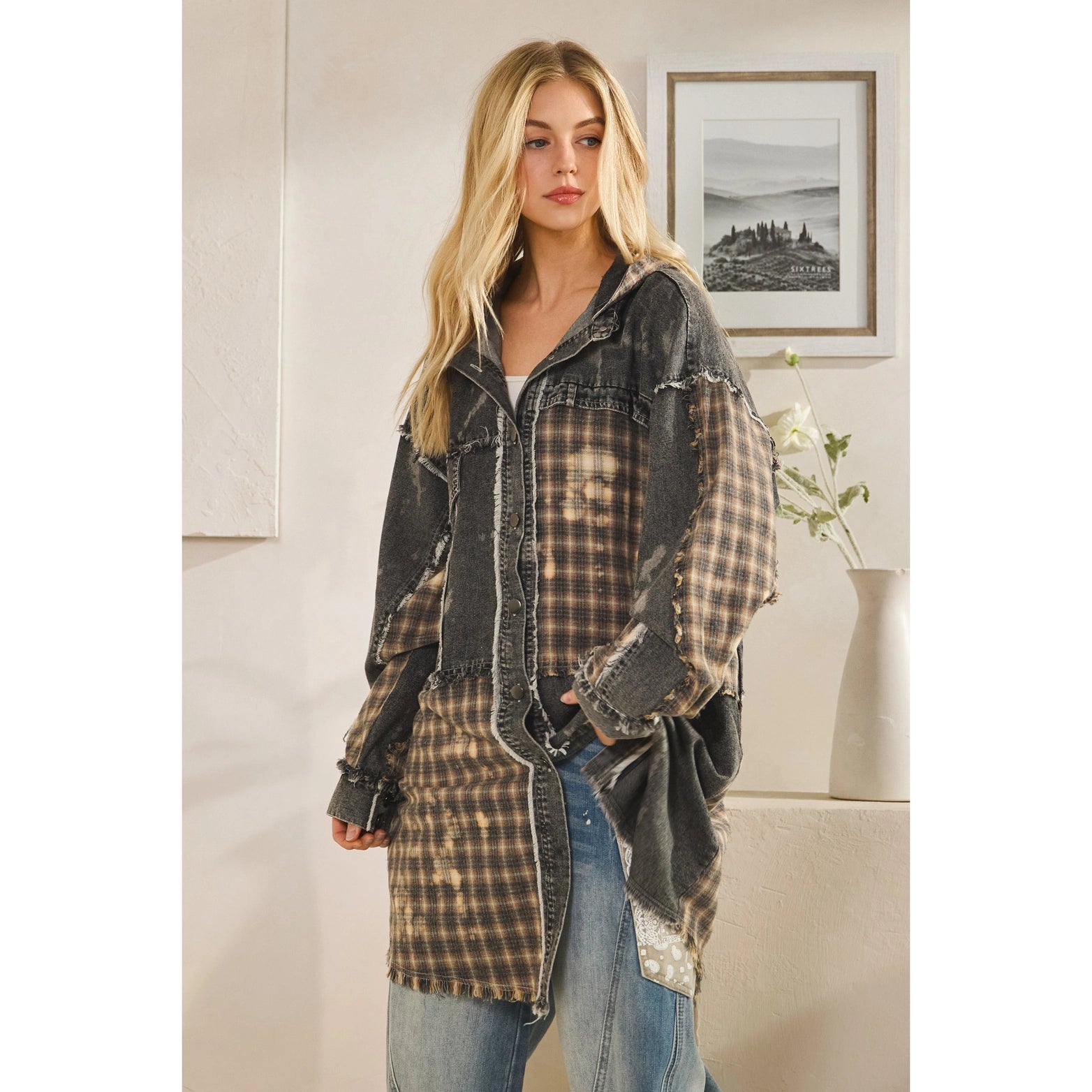 Break all the right rules in the Urban Outlaw Hooded Shacket. Crafted from 100% cotton with a relaxed, throw-on-and-go fit, this mash-up of denim, plaid, and raw-edge patchwork brings gritty street style to life. The hood adds that extra dose of rebel energy, while the distressed detailing keeps every outfit looking effortlessly cool.