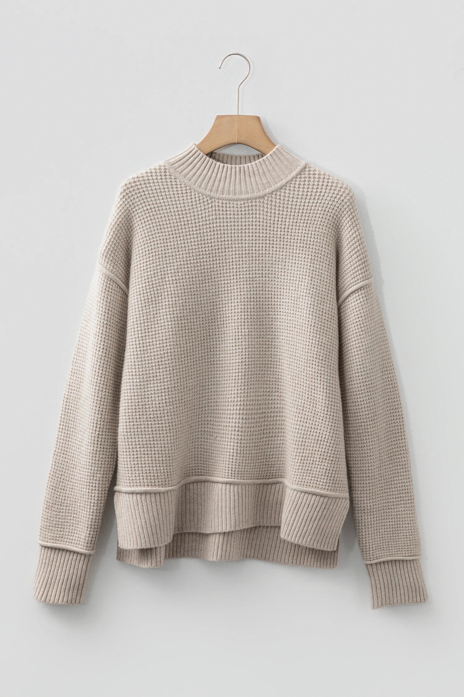 Elevate your cozy wardrobe with the Waffle Luxe Highneck Sweater. Crafted from ultra-soft, high-quality fabric, it offers warmth and supreme comfort while maintaining a chic, refined look. The textured waffle knit adds subtle visual interest, and the elegant high neck pairs perfectly with the relaxed, loose fit that flatters most body shapes. A versatile staple for effortless style on chilly days.
