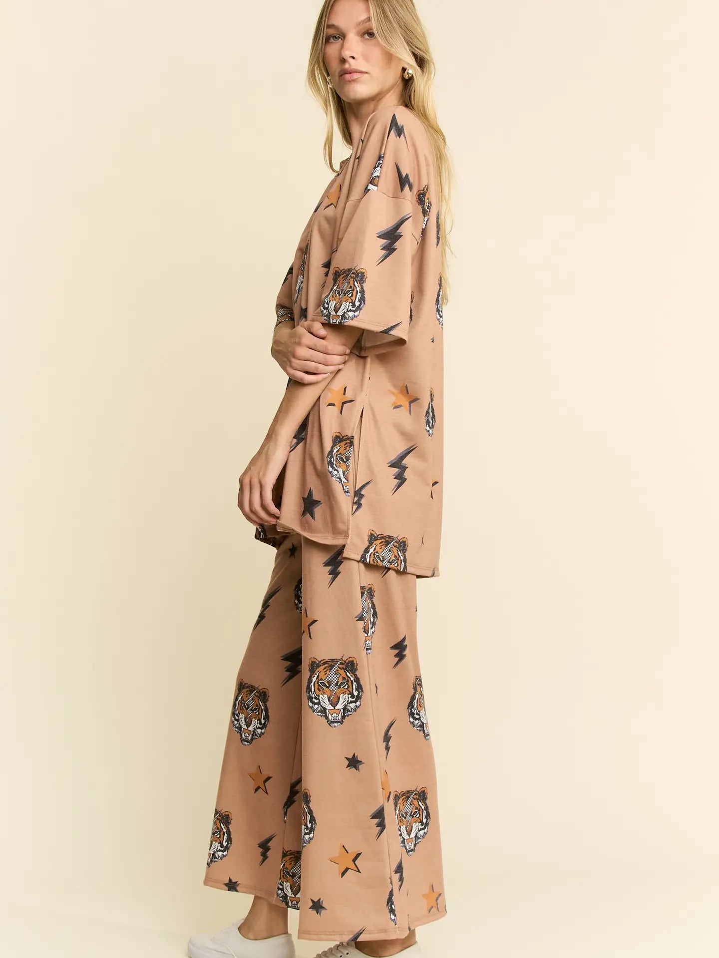 The Ziggy Roar Bottoms bring the same bold tiger-meets-lightning vibe with effortless comfort built in. Featuring a flattering straight-leg fit and comfy elastic waistband, these are made for lounging, strutting, and everything in between. Oh — and yes, they have side pockets (because function matters).